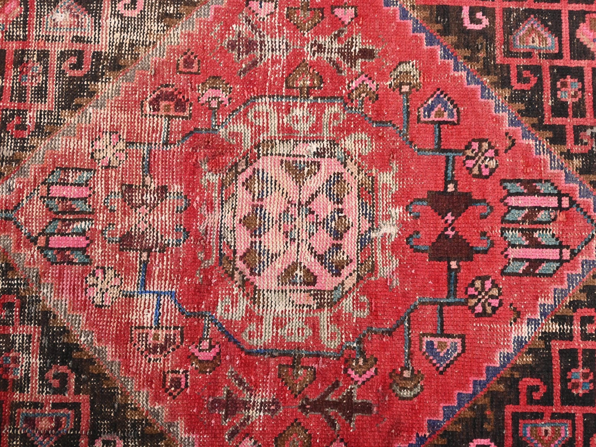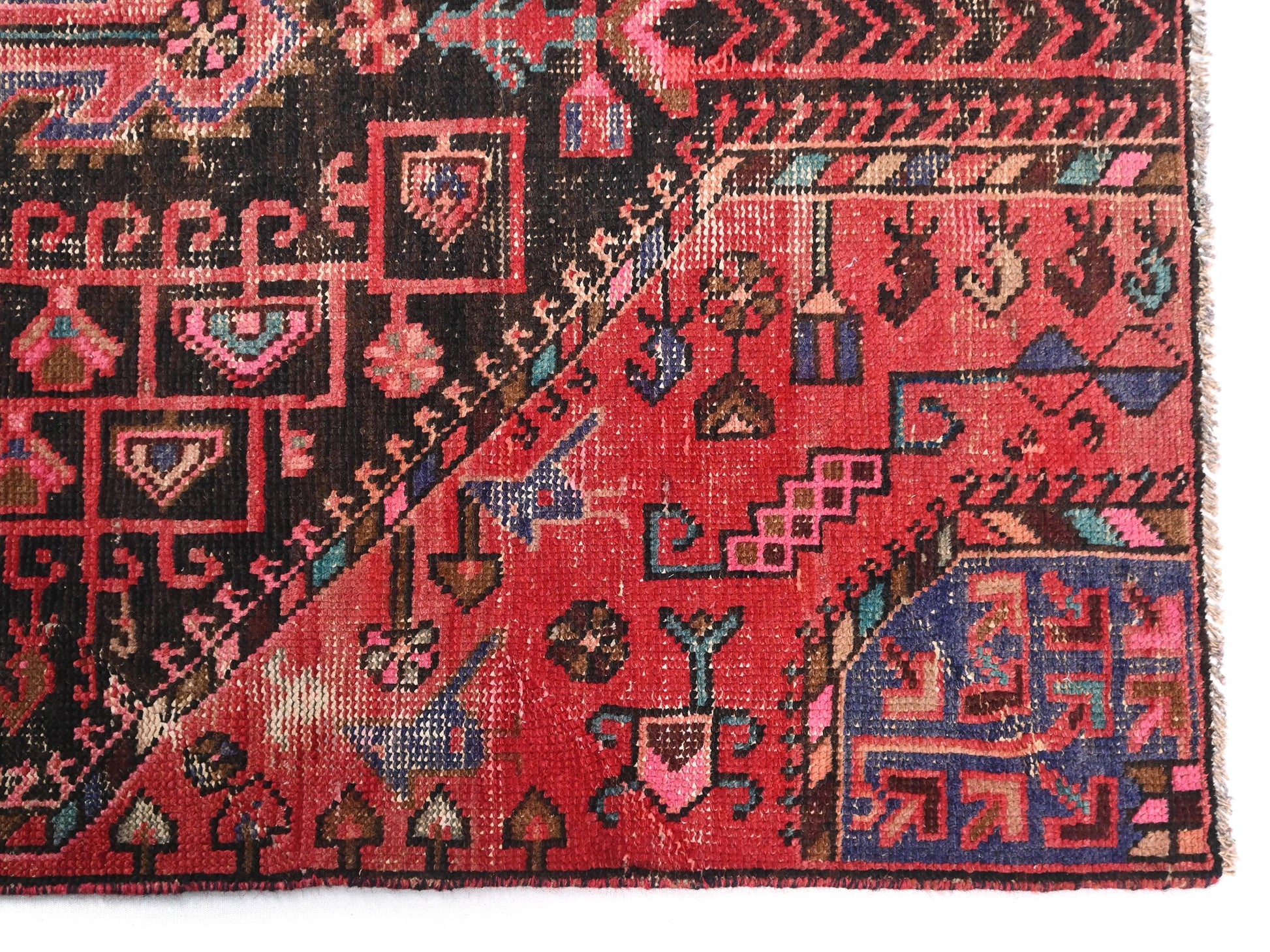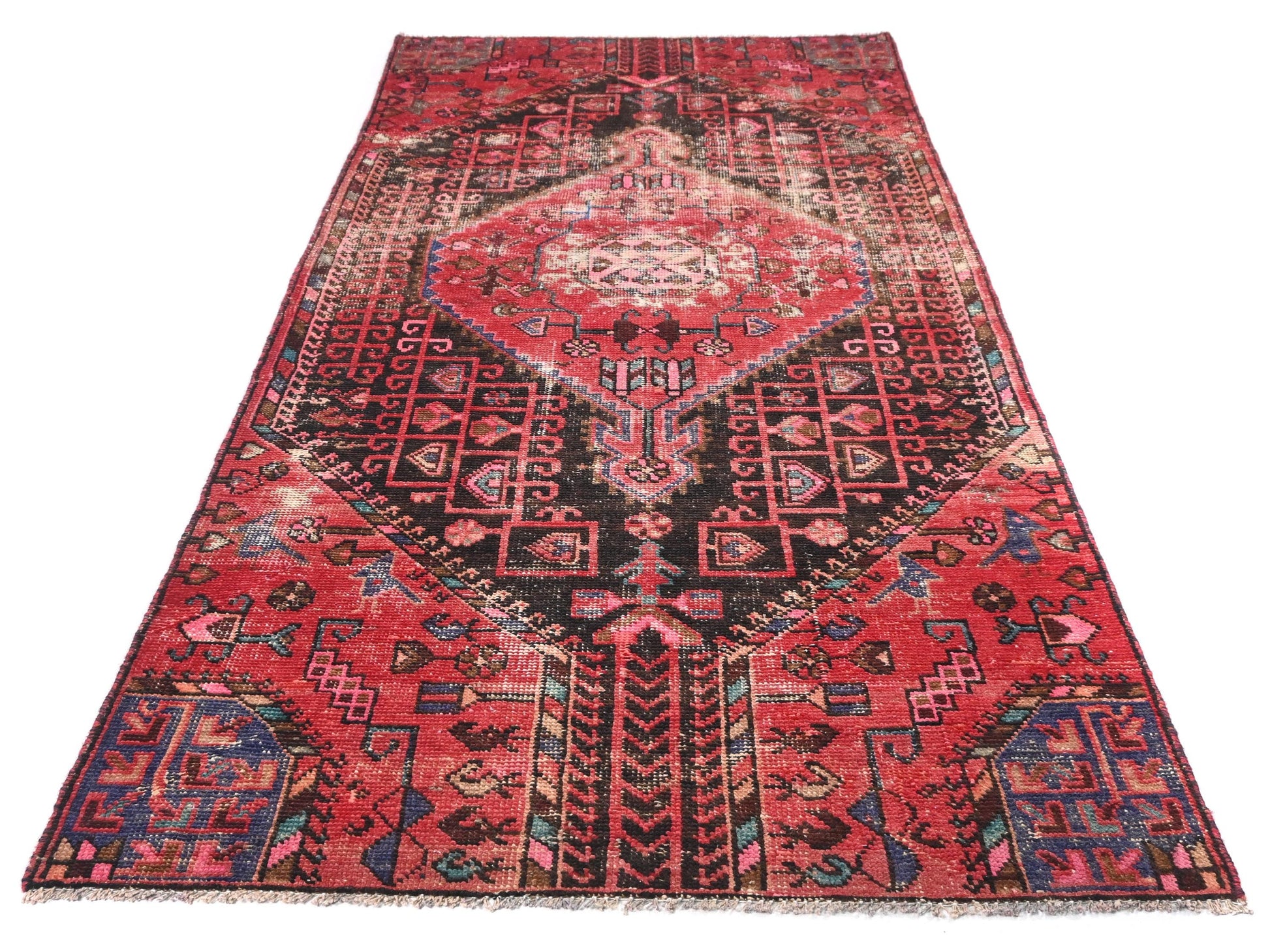 4x8 Handmade Turkish Vintage Tribal Rug | Bright Red Field with Bold Medallion | Boho Rug, Antique Anatolian Rug | SHR657 | From 1980 |