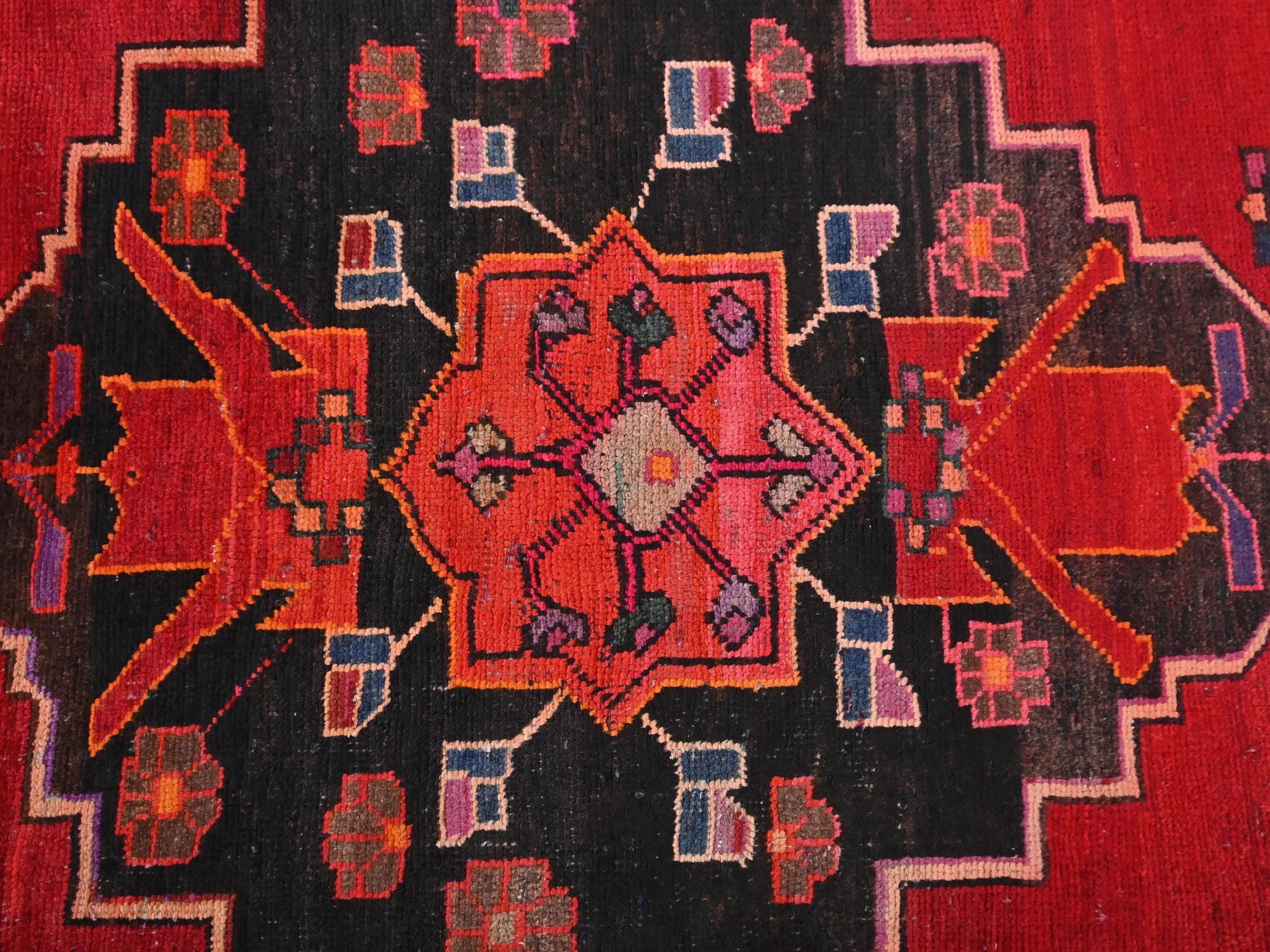 4x8 Handmade Turkish Vintage Tribal Rug | Vibrant Red Field with Black Medallion | Boho Rug, Antique Anatolian Rug | SHR-687 | From 1980 |