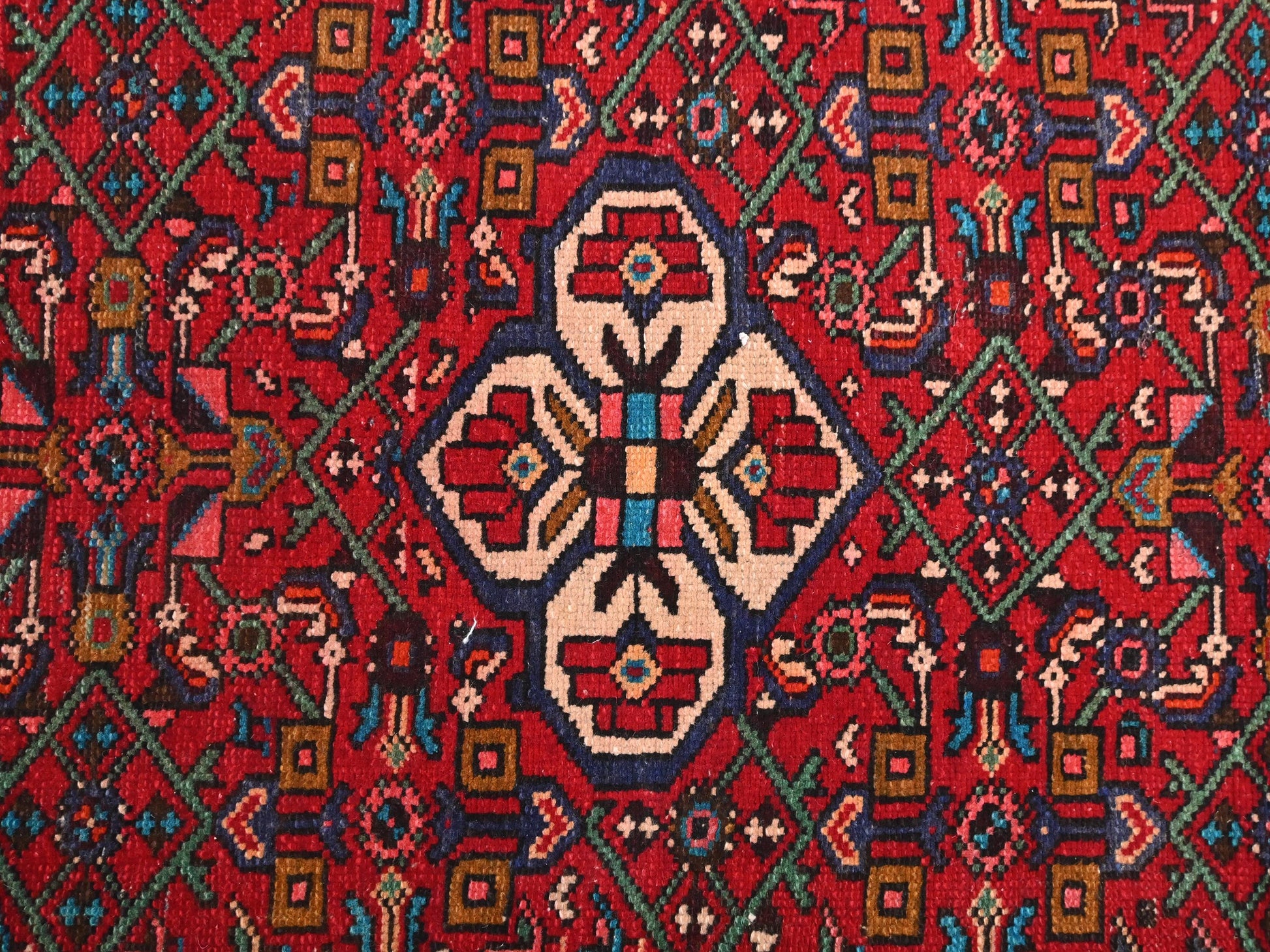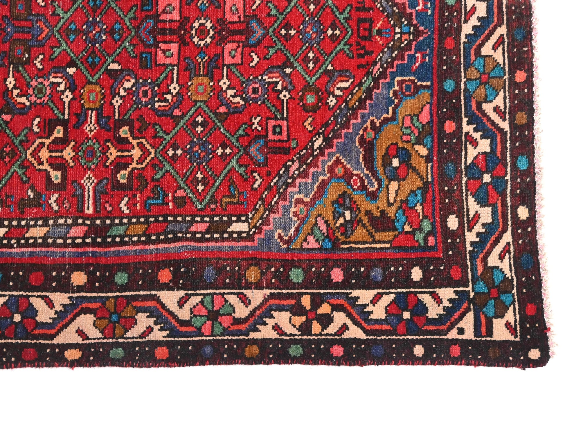 4x9 Handmade Turkish Vintage Tribal Rug | Red Field With Micro-Florals And Center Emblem | Boho Rug, Anatolian Rug | SHR602 | From 1970