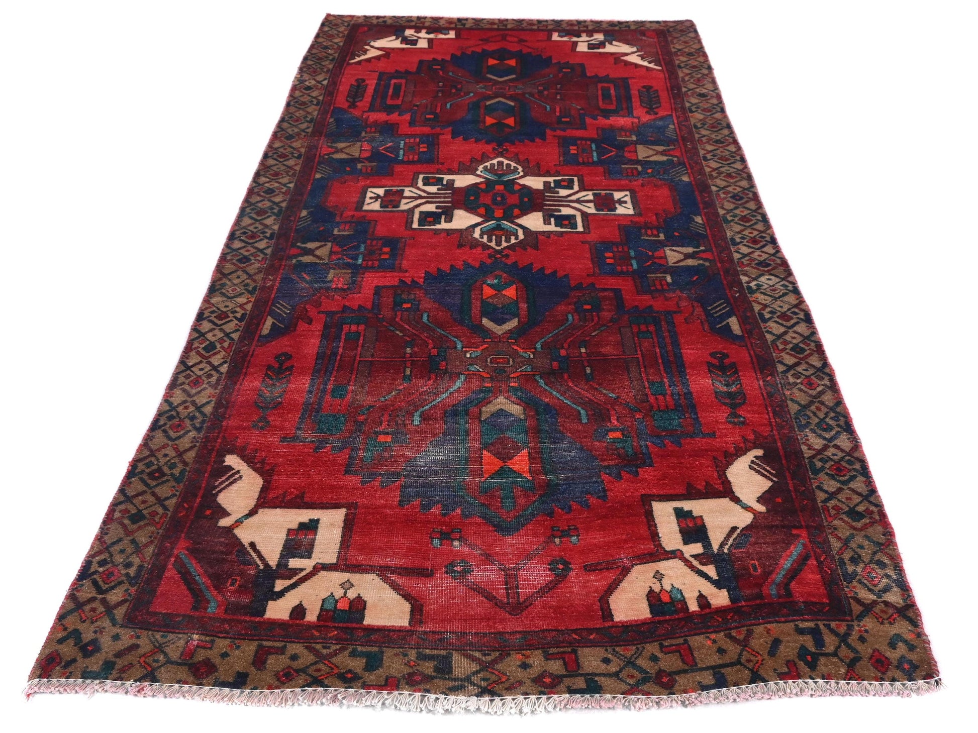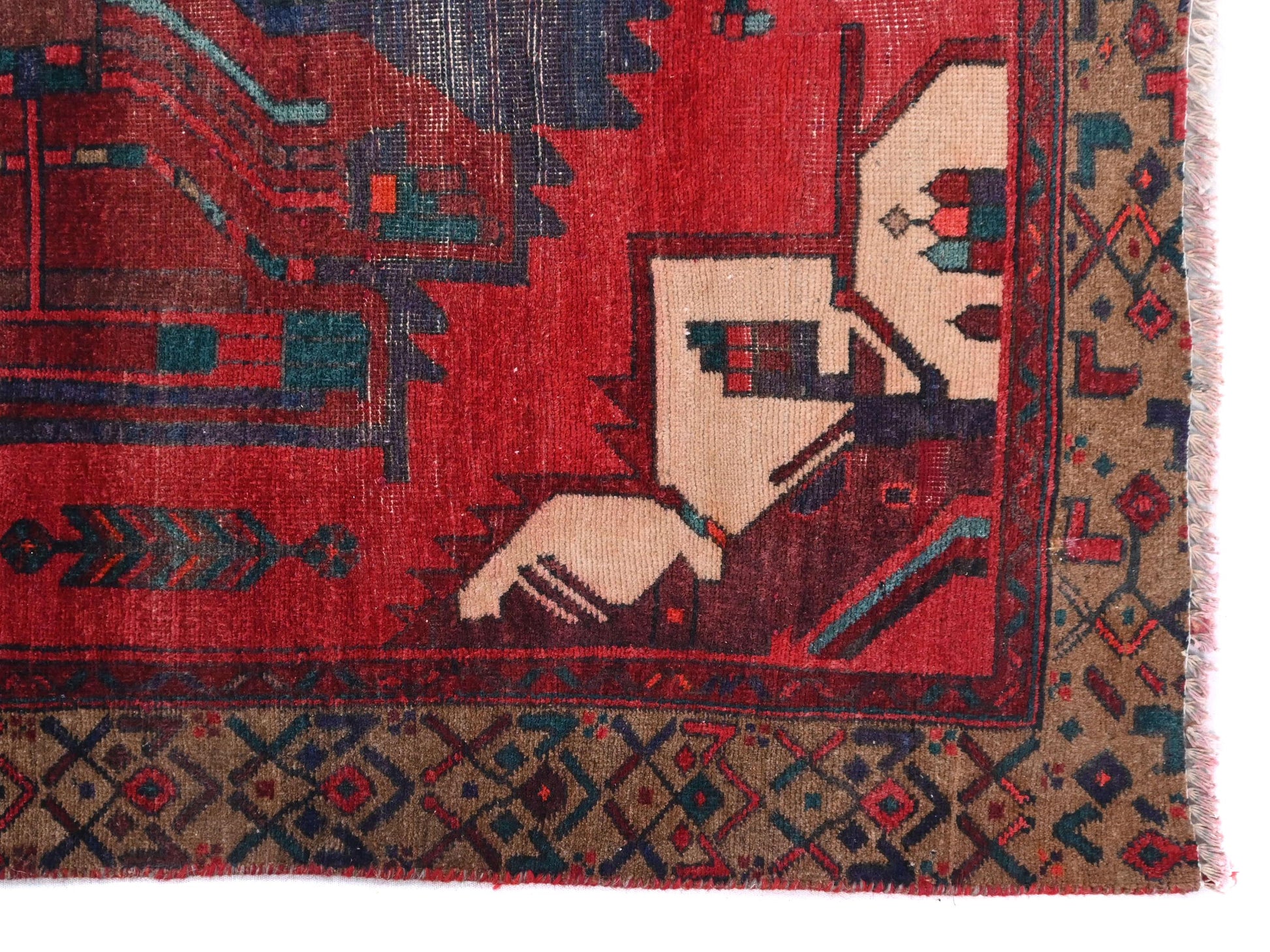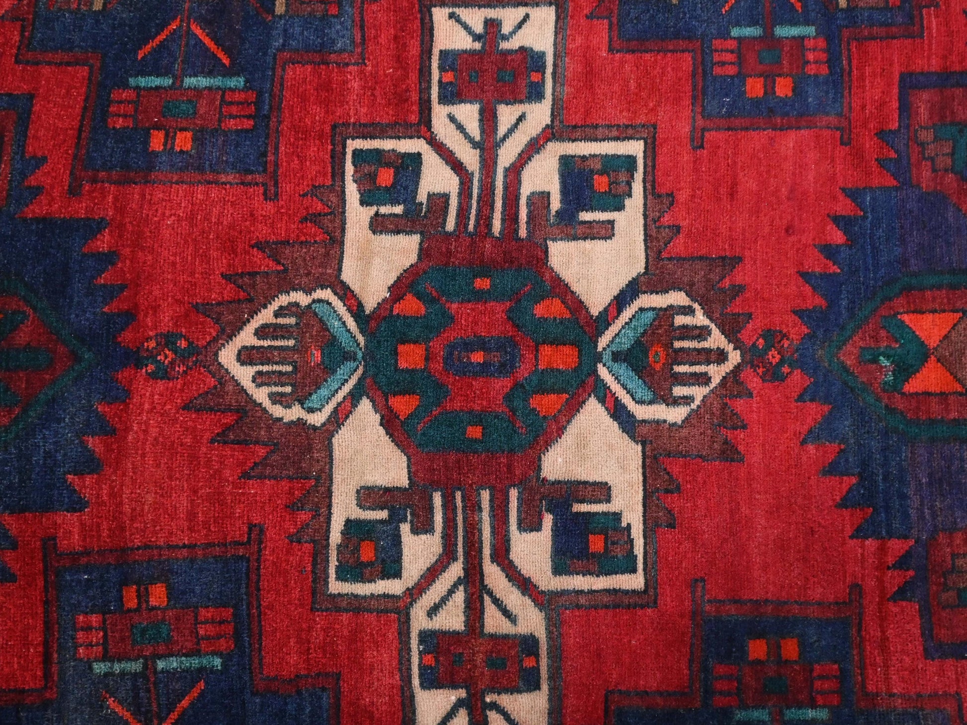 4x9 Handmade Turkish Vintage Tribal Rug | Rich Red Field with Diamond Medallions | Boho Rug, Antique Anatolian Rug | SHR-699 | From 1980 |