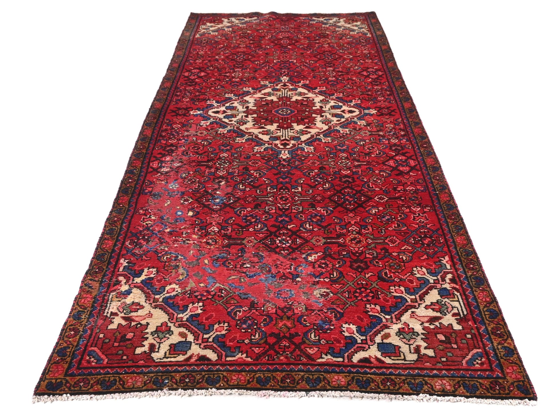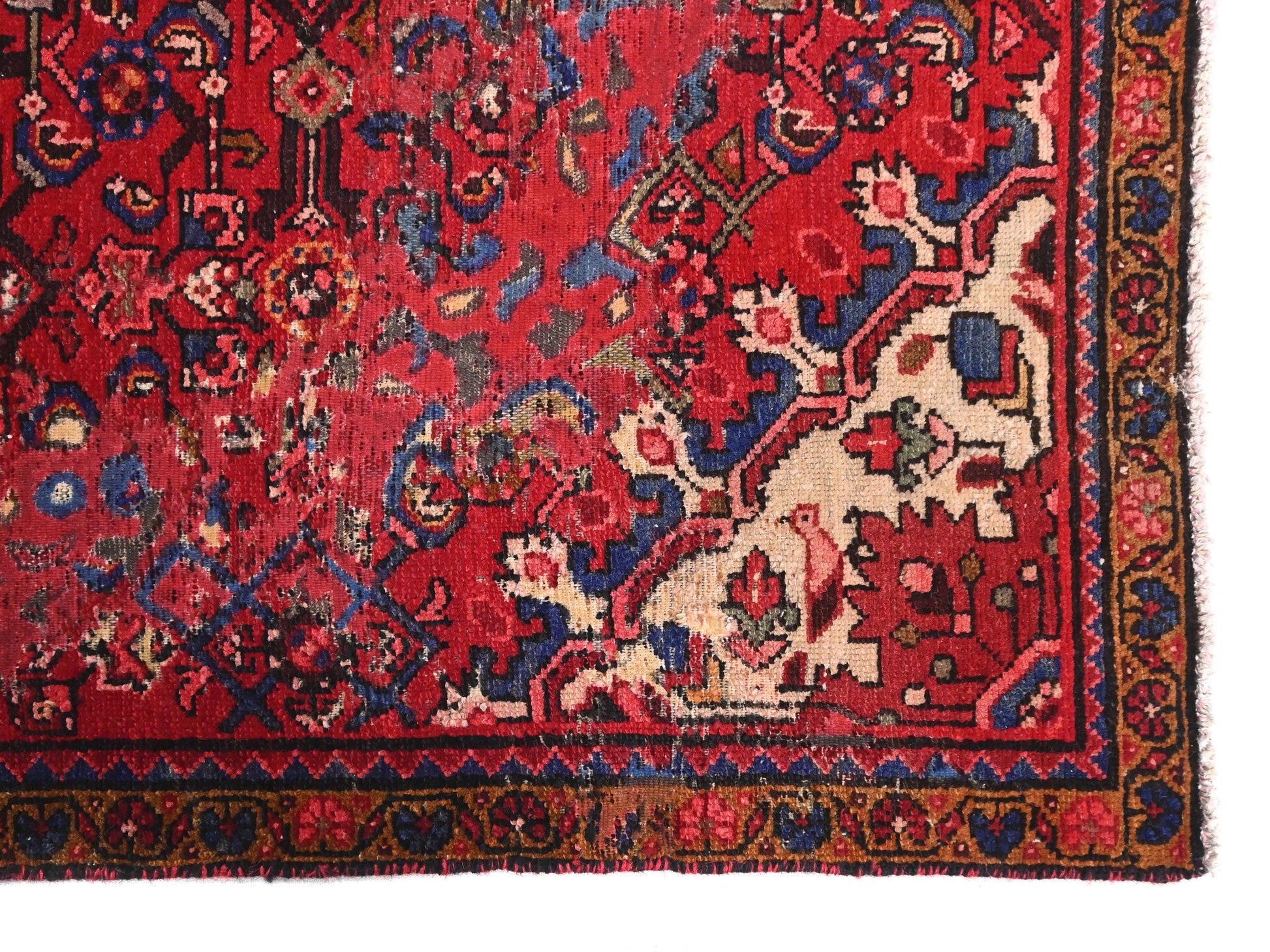Crafted by hand with over 12 knots per square inch, this antique piece is not only unique but built to last. Its mid-sized runner shape is ideal for entryways, kitchens, or narrow living spaces. The rich color palette brings a grounding energy, and its worn patina makes this rug a soulful and elegant addition to any home.