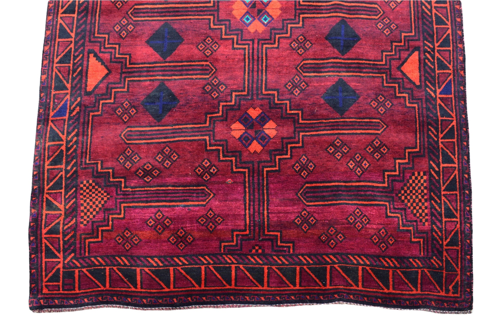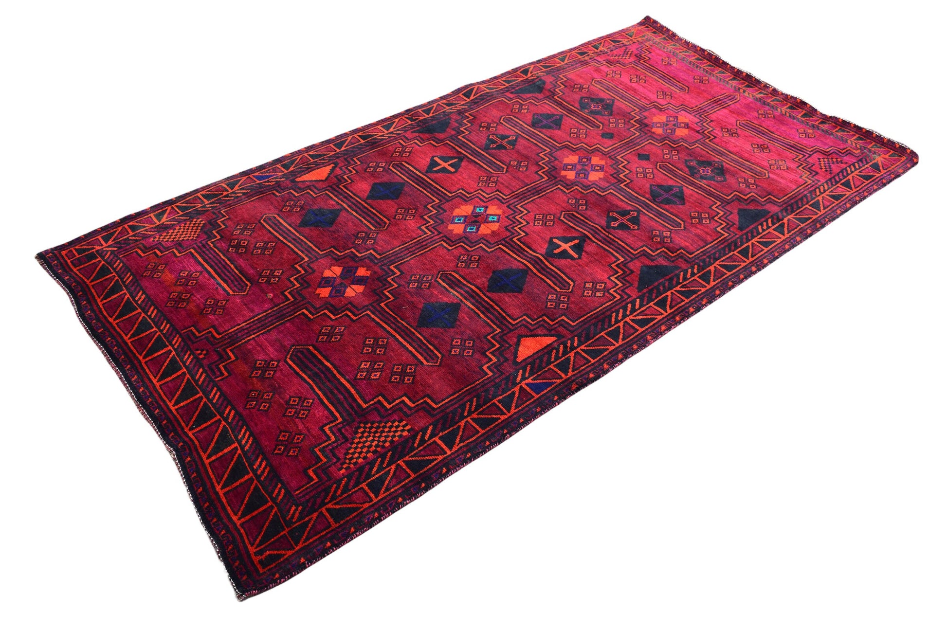 The vintage rugs in our collection have a rich and deep color palette and feature the characteristic design of a central pole medallion interspersed with geometric patterns and symmetrical shapes. Across their borders are often smaller bands encompassing a larger band with palm and leaf designs. A common theme in these rugs is geometric floral motives in various colors.