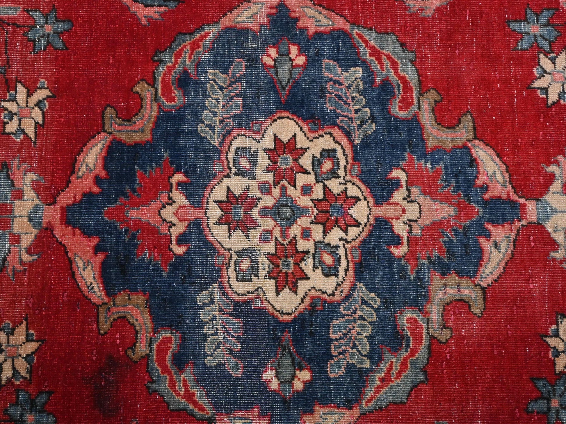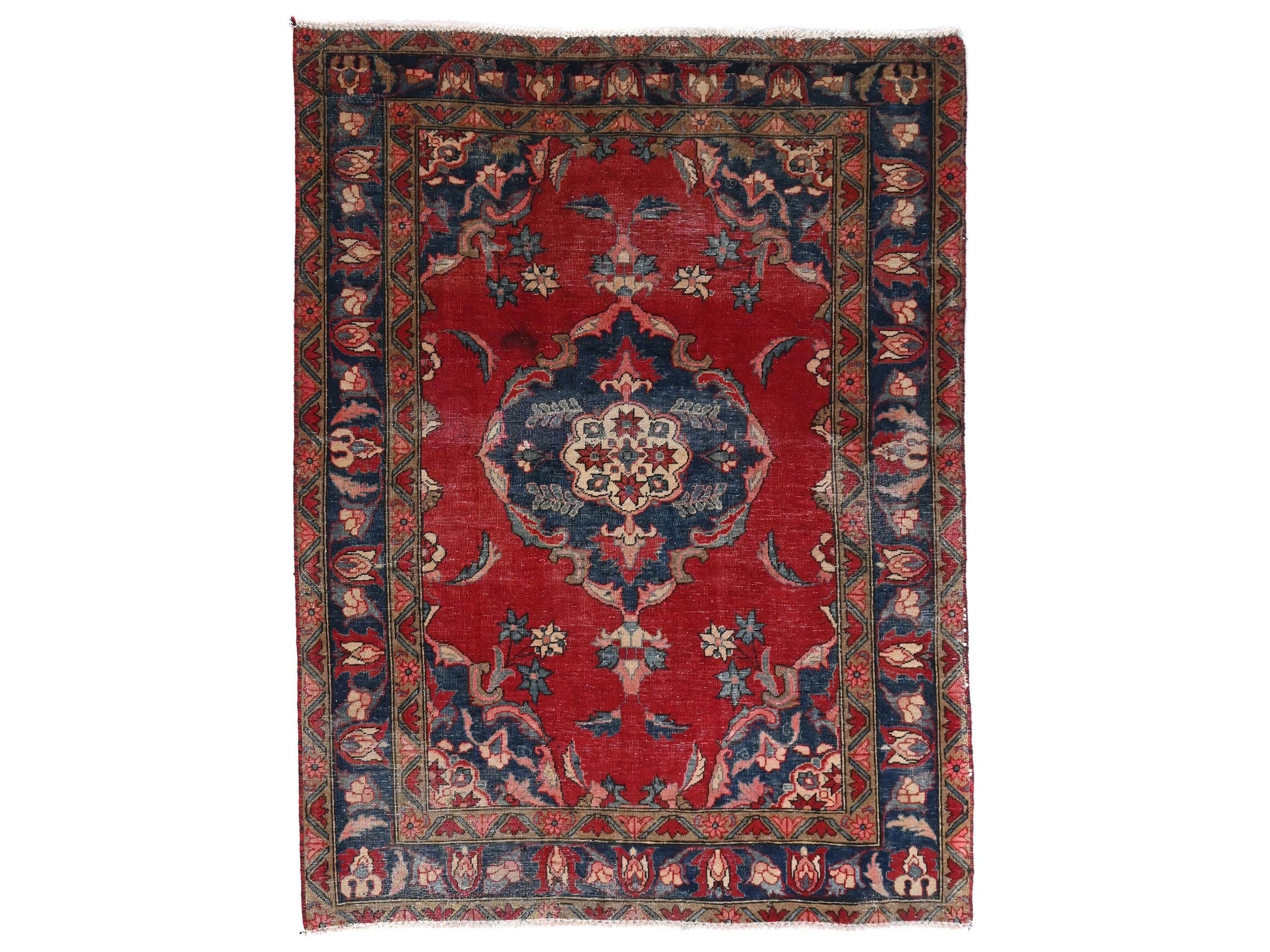 5x6 Handmade Turkish Vintage Tribal Rug | Deep Red Field with Floral Blue Medallion | Boho Rug, Antique Anatolian Rug | SHR-725 | From 1980