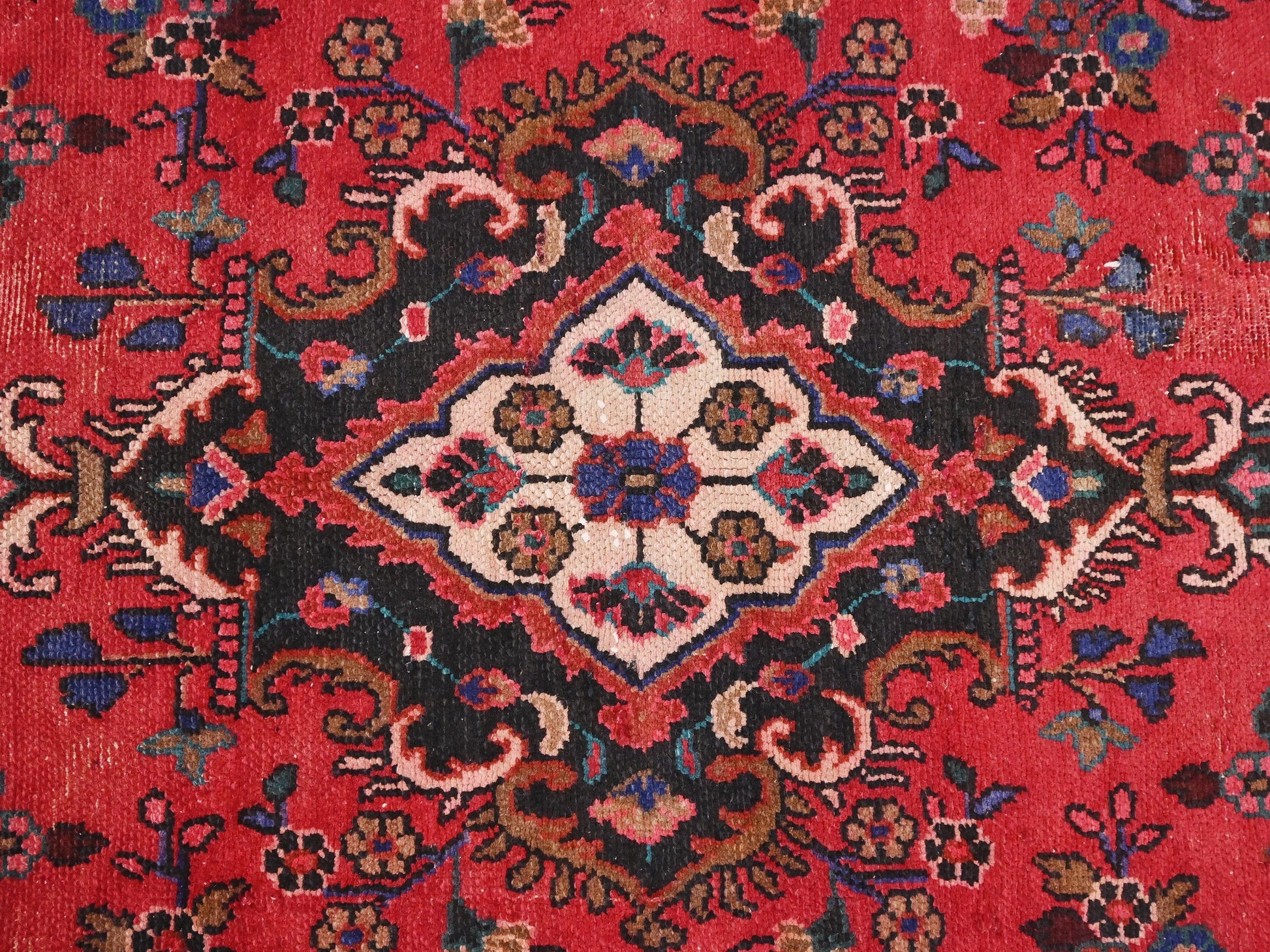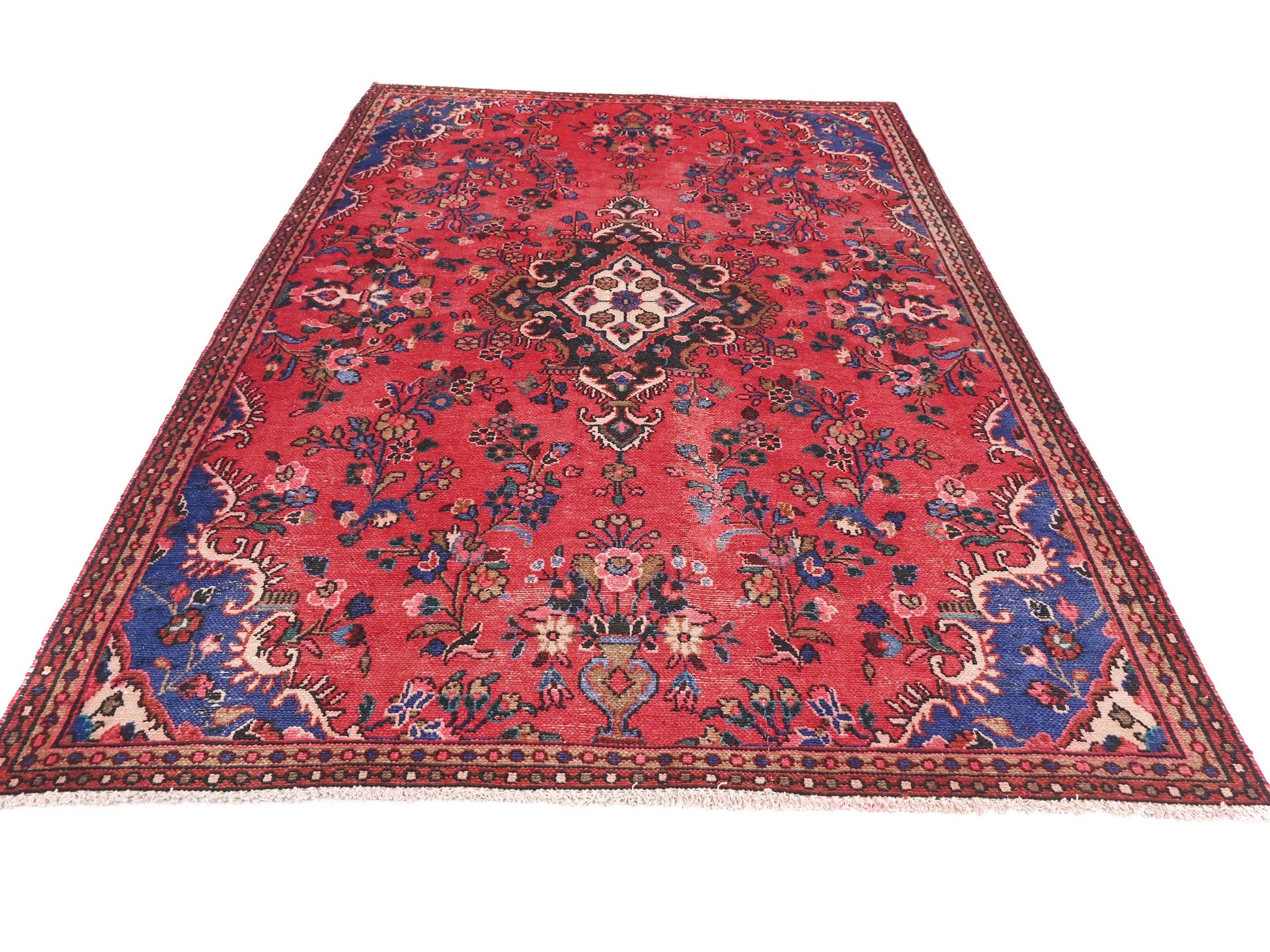 5x8 Handmade Turkish Vintage Tribal Rug | Floral Diamond Medallion On Rich Red Field | Boho Rug, Antique Anatolian Rug | SHR736 | From 1980