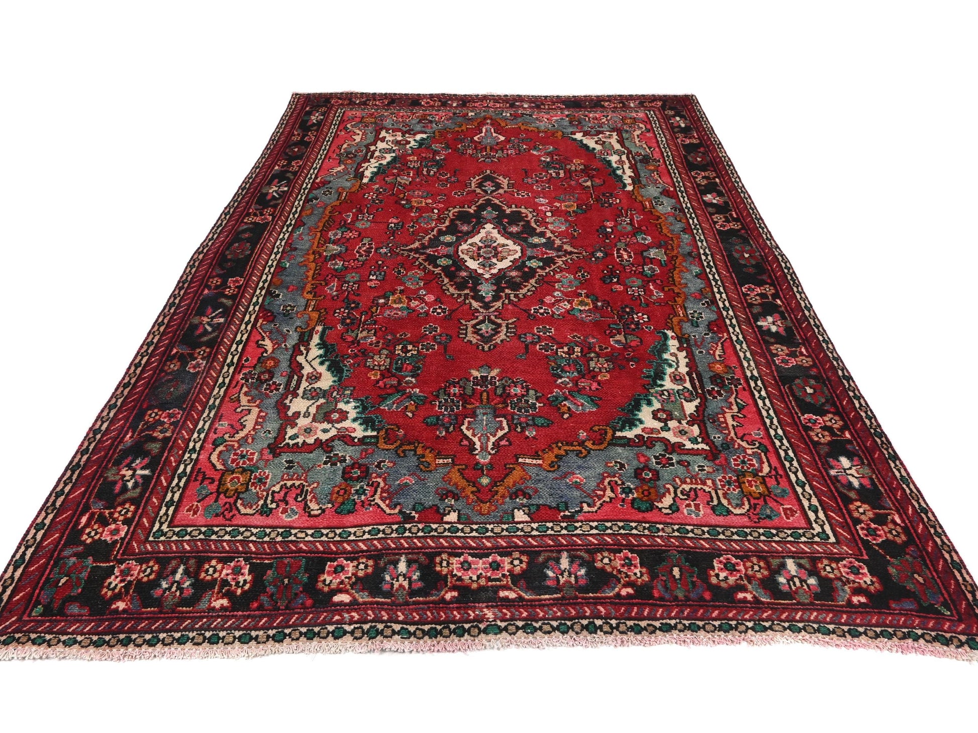 7x10 Handmade Turkish Vintage Tribal Rug | Crimson Medallion with Blue Spandrels | Boho Rug, Antique Anatolian Rug | SHR728 | From 1980 |