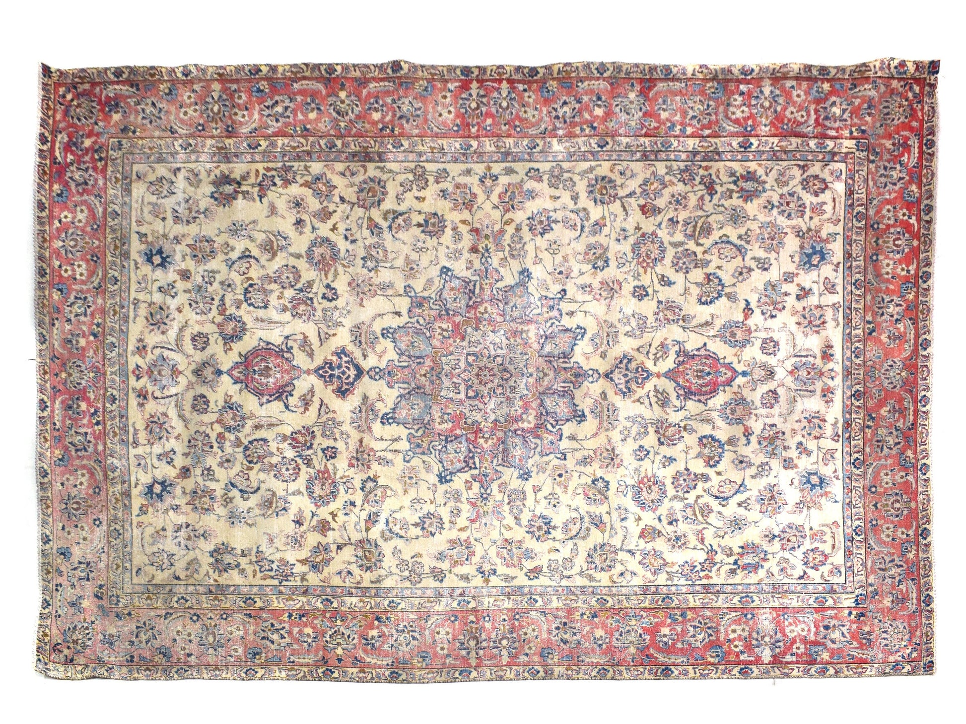 These beautiful Oushak area rugs are distinctive in both their pattern and colour palette. They feature various geometric motives with central medallion drawings as well as scattered sprays of vine scroll and palmettes. Made using the softest wool and with natural dyes, our vintage rugs are ethically and sustainably sourced as well as professionally cleaned before being made available to our customers