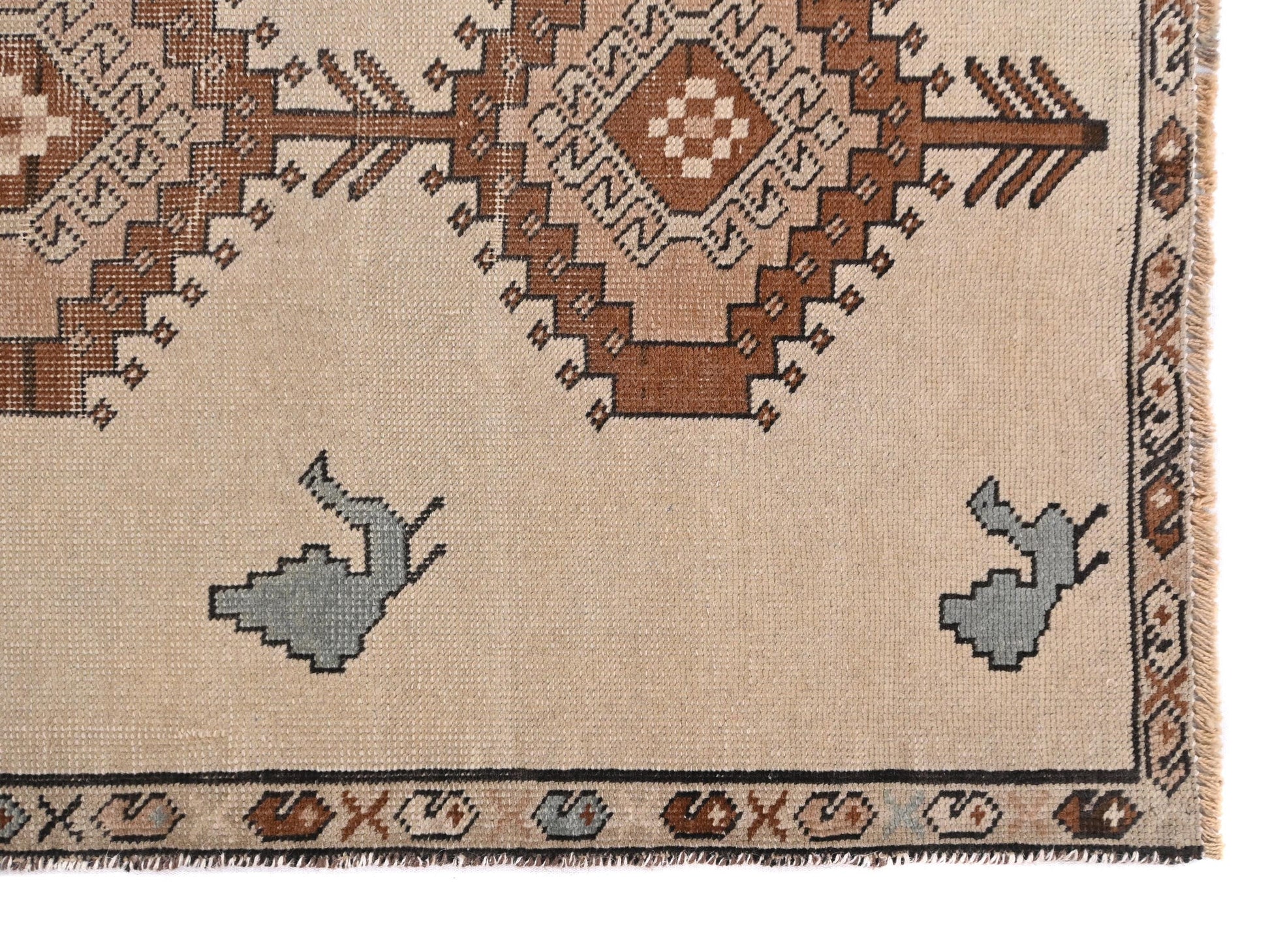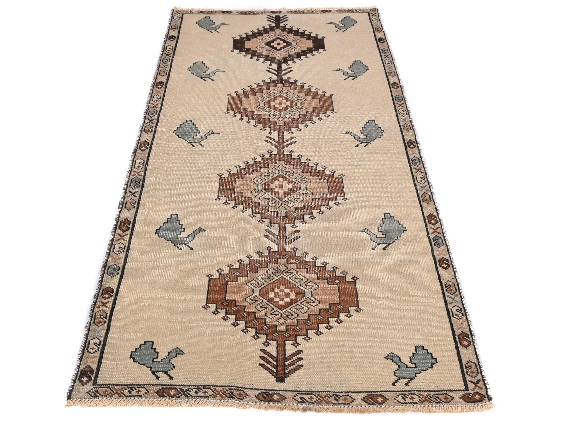 3x6 Handmade Turkish Vintage Tribal Rug | Beige Field with Geometric Medallions | Boho Rug, Antique Anatolian Rug | SHR-405 | From 1980